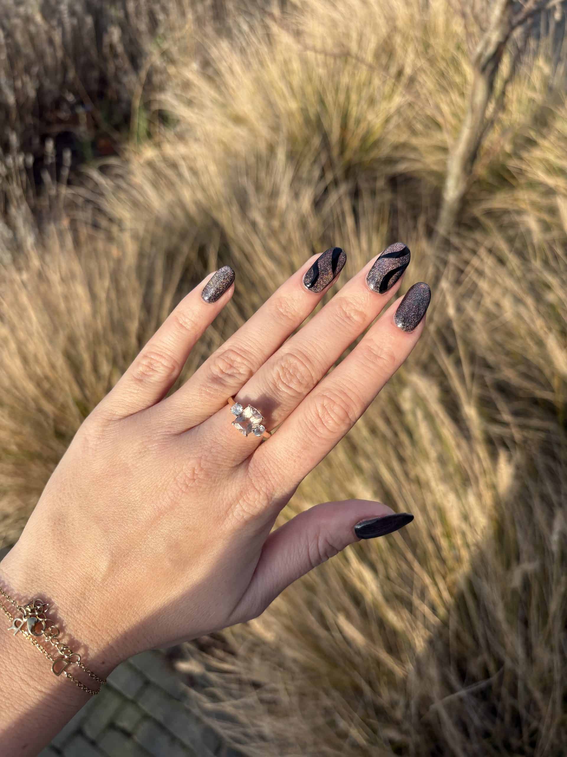 Nadat de basecoat en de eerste kleurlaag zijn uitgehard onder de lamp, breng je vervolgens de tweede kleurlaag aan. Voordat je deze uithard dien je het magneetje 3 tot 5 seconden boven de Cat’s Eye lak te houden. Hierdoor zullen de metaaldeeltjes samen trekken, vervolgens direct uitharden onder de lamp, dat eerst voor alle nagels herhalen (stuk voor stuk) om vervolgens de topcoat aan te brengen.