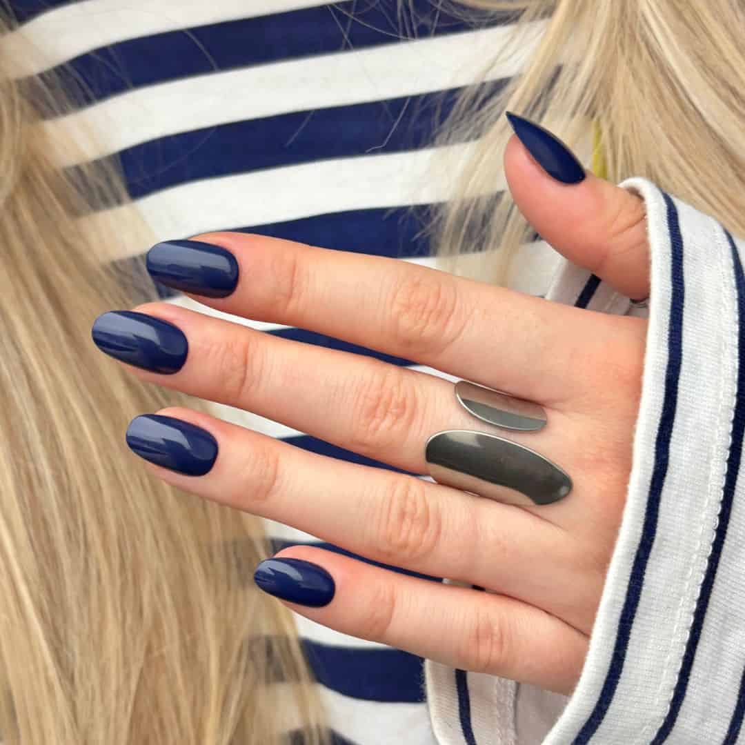 Navy Blue is de perfecte mix van chic en stoer. Deze diepblauwe tint geeft je nagels een luxe uitstraling en past bij zowel casual als elegante looks. Een superfijne kleur om te dragen en om te combineren met diverse outfits.
